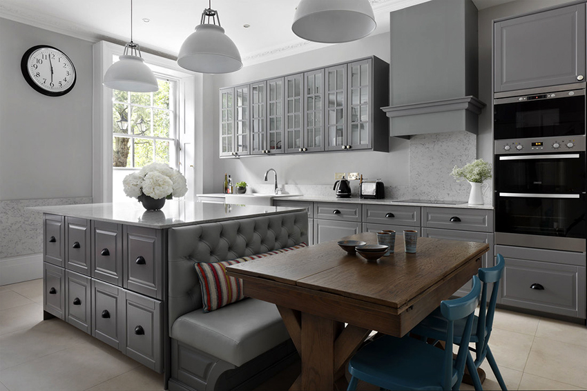 Mesa redonda para la cocina: un acento clásico en un interior moderno.