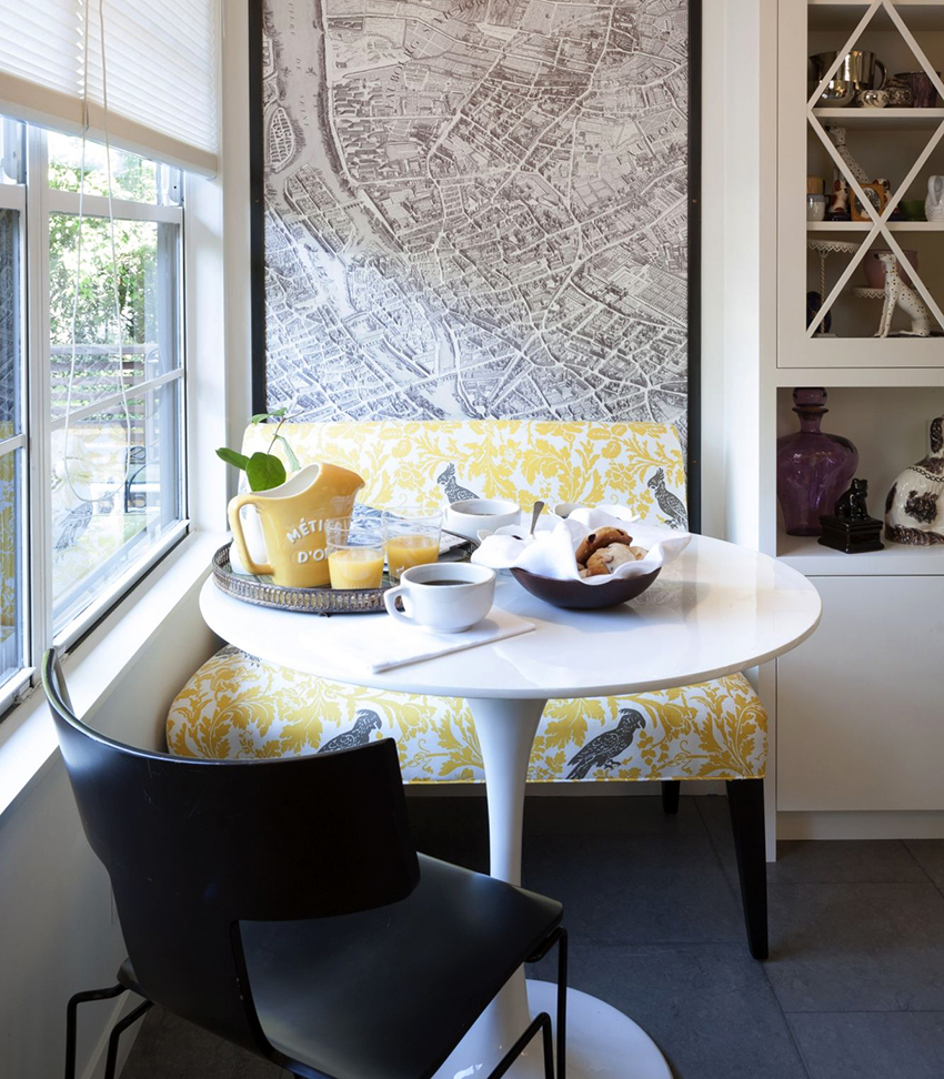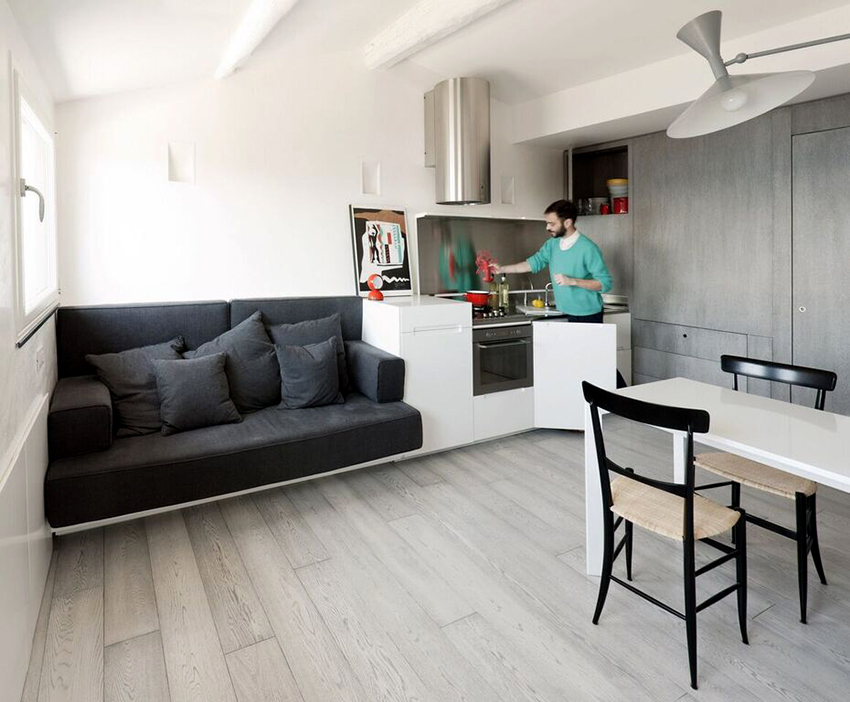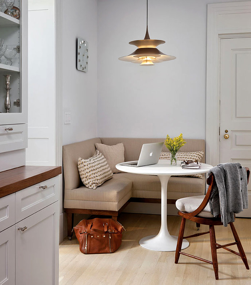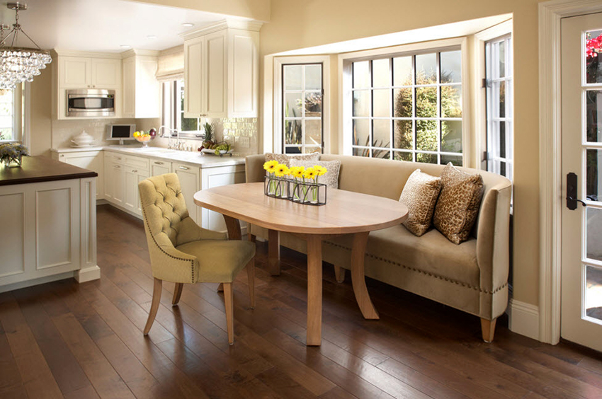 Es necesario seleccionar un sofá de dimensiones compactas para la cocina.