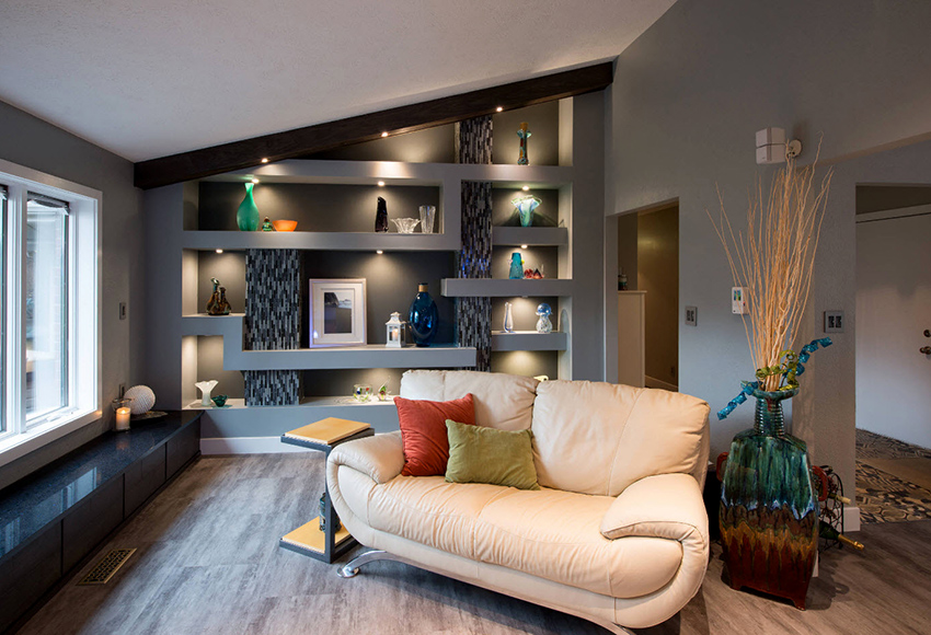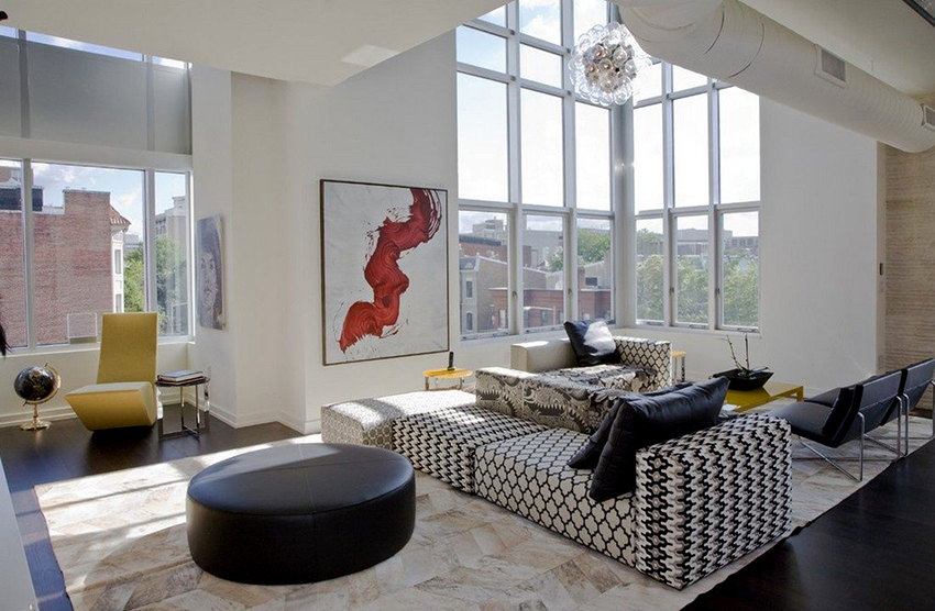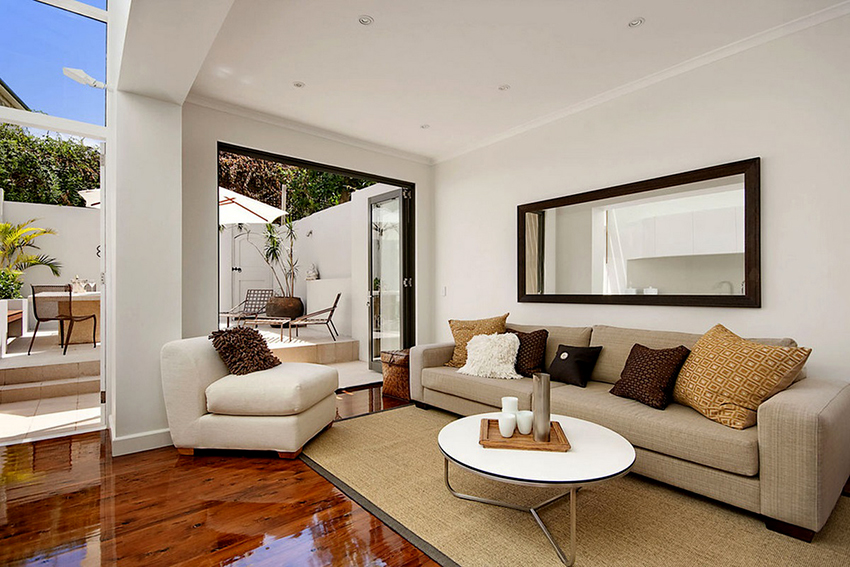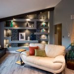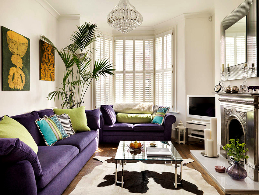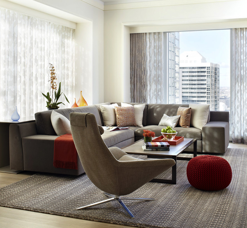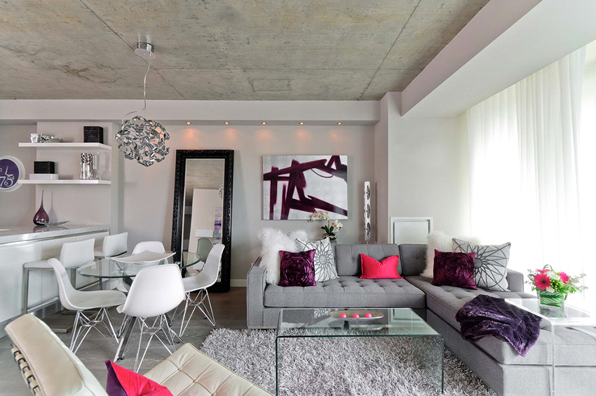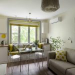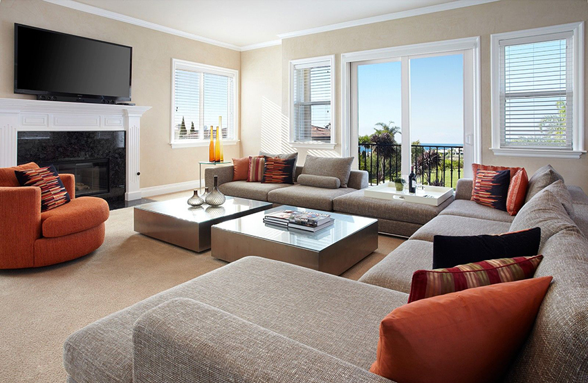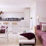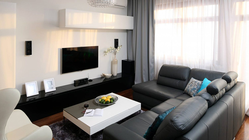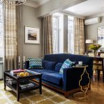 ¡Consejo útil!No debe comprar muebles tapizados en la sala de estar, que ocuparán más de 1/5 (para sofás de esquina) y 1/6 (para estructuras rectas) del área de la habitación.
