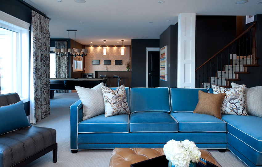 ¡Consejo útil!Al elegir un sofá de esquina de longitud larga, también se debe tener en cuenta su altura. Incluso en una habitación espaciosa, pero con techos bajos, los muebles altos se verán voluminosos.