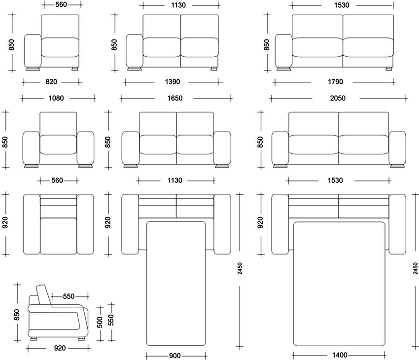 De acuerdo con los indicadores dimensionales, se distinguen los siguientes tipos de sofás: