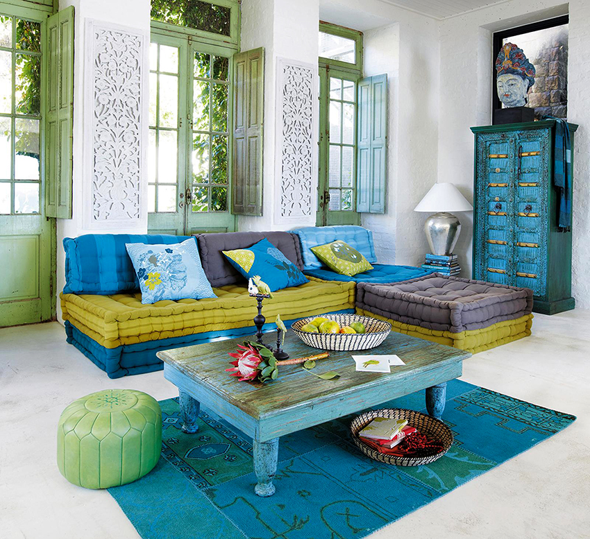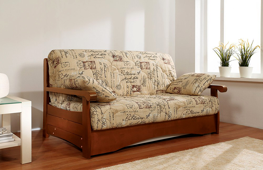 Dichos sofás también se distinguen por algunas características de diseño. Como regla general, los reposabrazos están hechos de madera o metal. Los muebles se ven elegantes, no voluminosos. A veces, los reposabrazos se reemplazan por cojines laterales, que son convenientes tanto para apoyarse como para acostarse. La tapicería para sofás se utiliza abigarrada ("periódico", abstracción, motivos florales), lo que le da a los productos una especial originalidad.