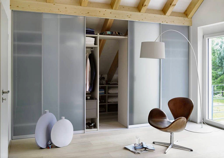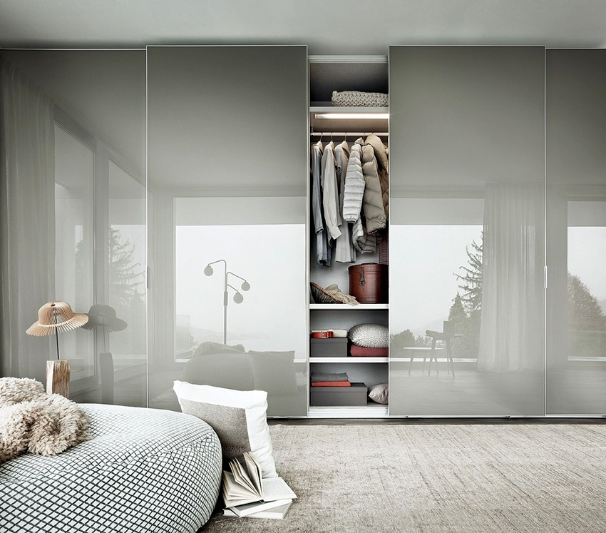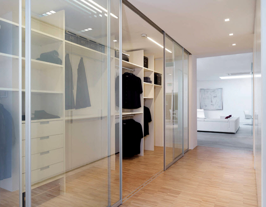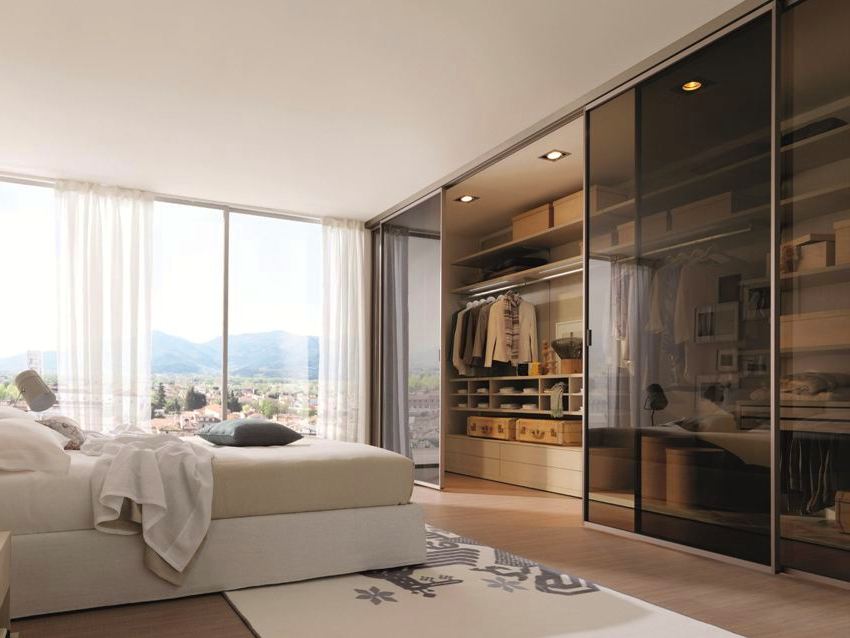 Las fachadas de vidrio de los armarios corredizos de hoy son una de las más populares, junto con las