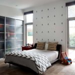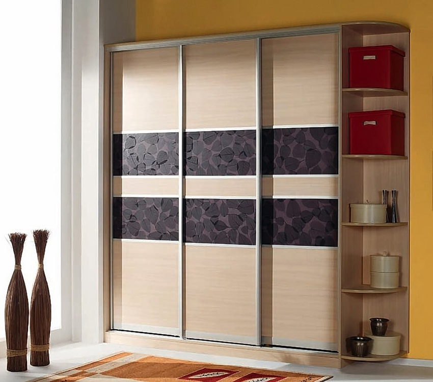 Para la fabricación de puertas de armario se pueden utilizar los siguientes materiales: aglomerado, MDF, madera natural, bambú, ratán, espejo, vidrio, metal y plástico. El más popular es el aglomerado. Es un material fuerte, resistente mecánicamente, duradero y económico, fácil de mantener y seguro de usar. A pesar de que el aglomerado se presenta en una variedad de variaciones de color, la apariencia del producto es simple, gracias a lo cual el armario empotrado, la foto lo confirma claramente, no se destacará en el interior.