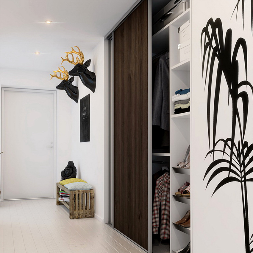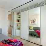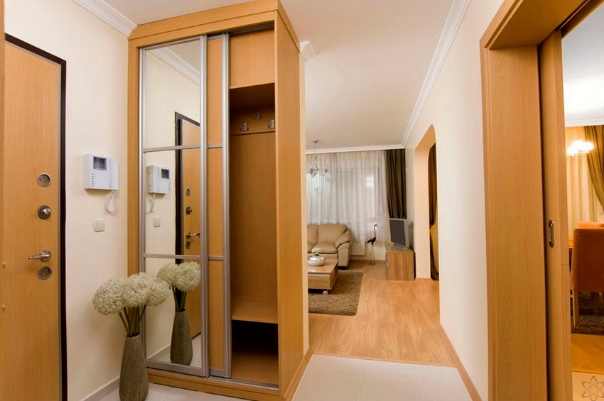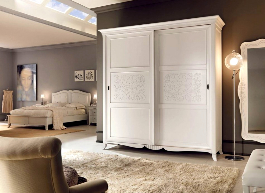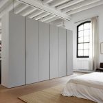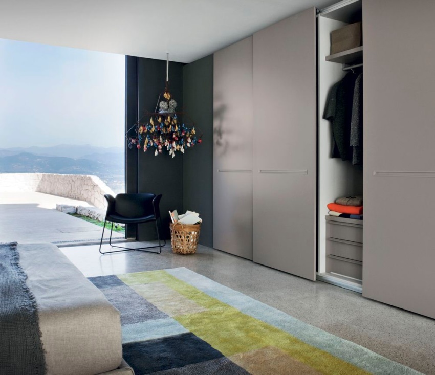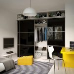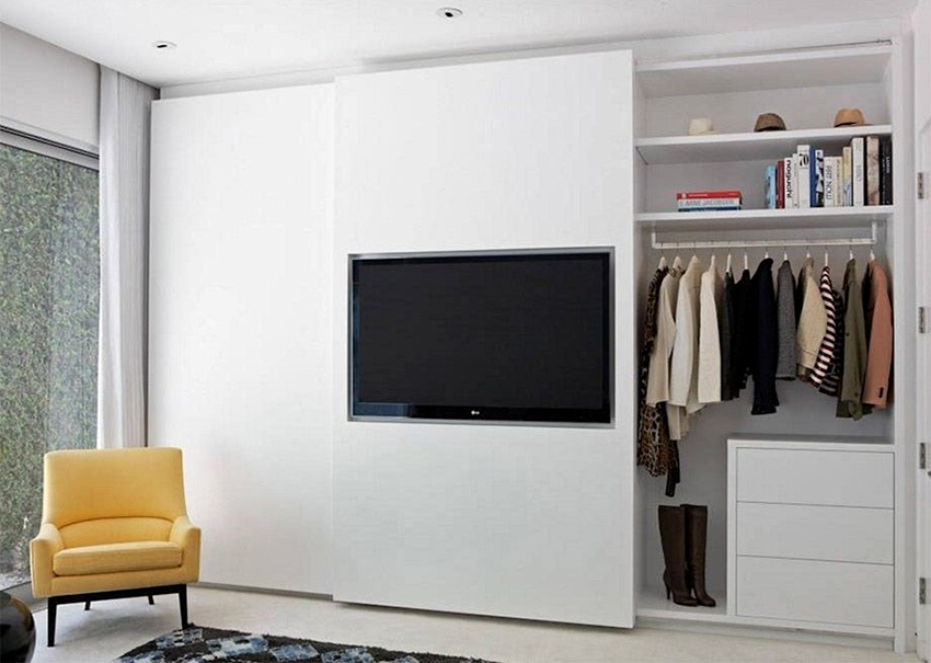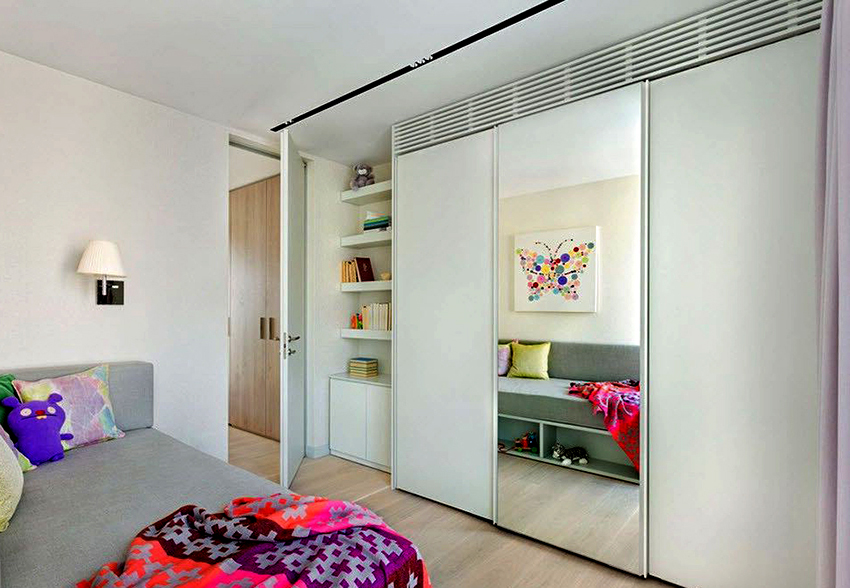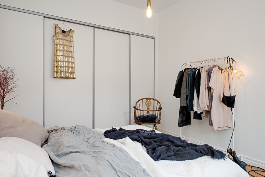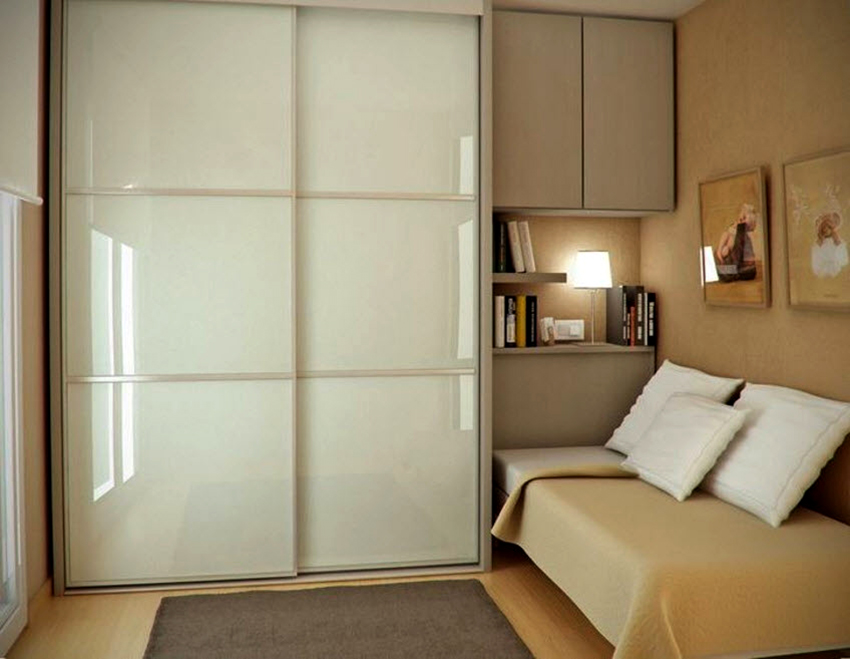 ¡Consejo útil! En el armario de la habitación, puede ocultar una tabla de planchar plegable, un tocador, equipos de radio y televisión.
