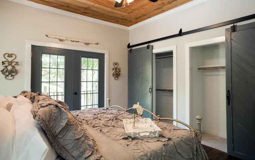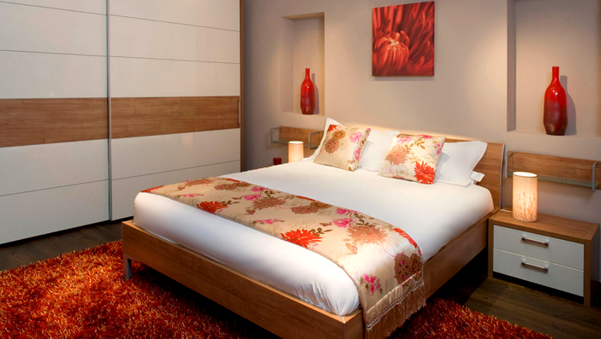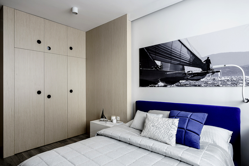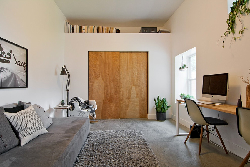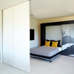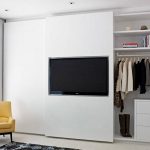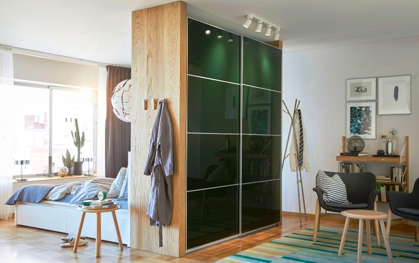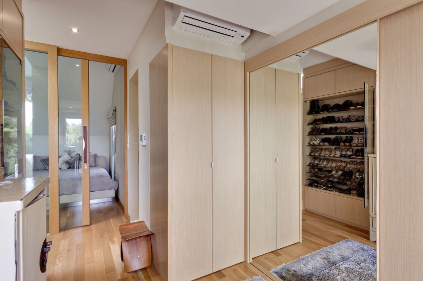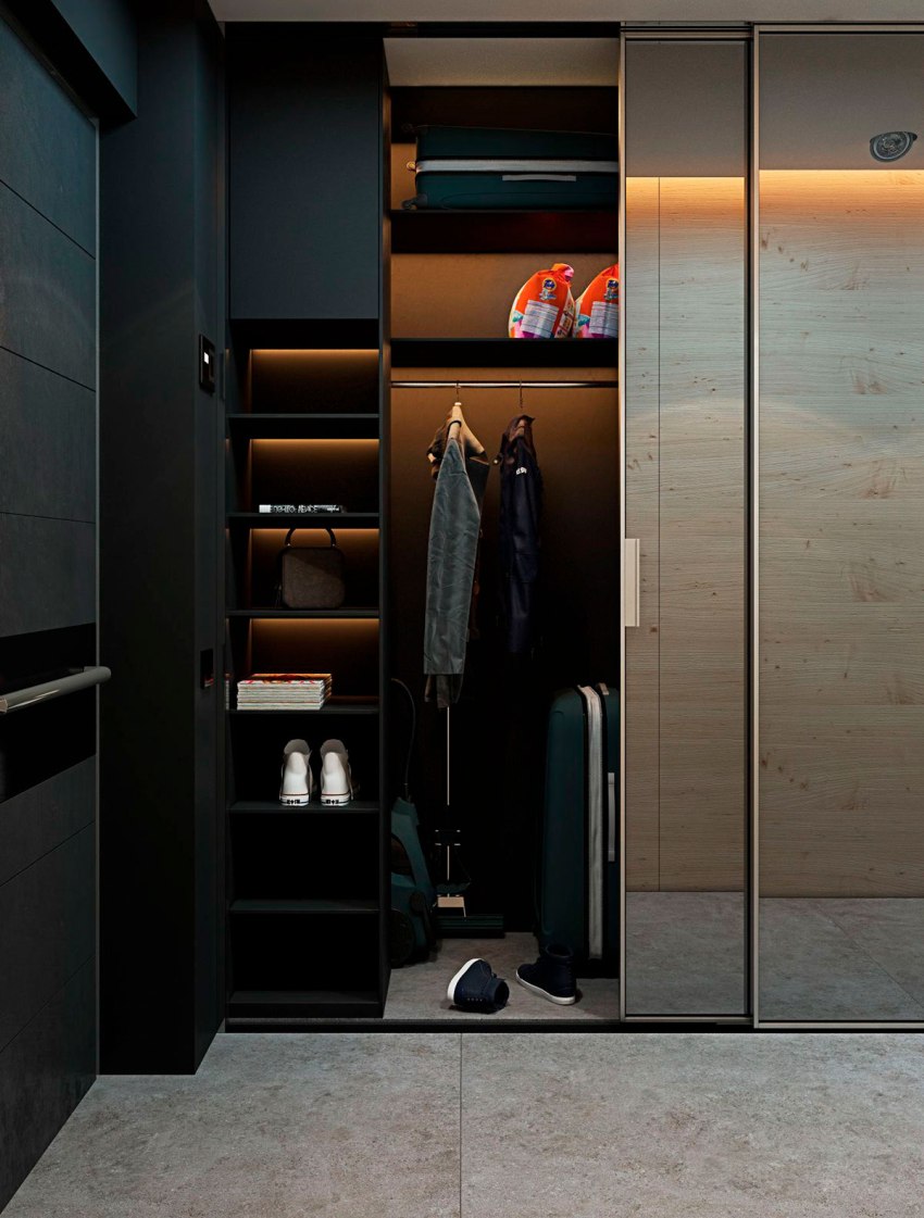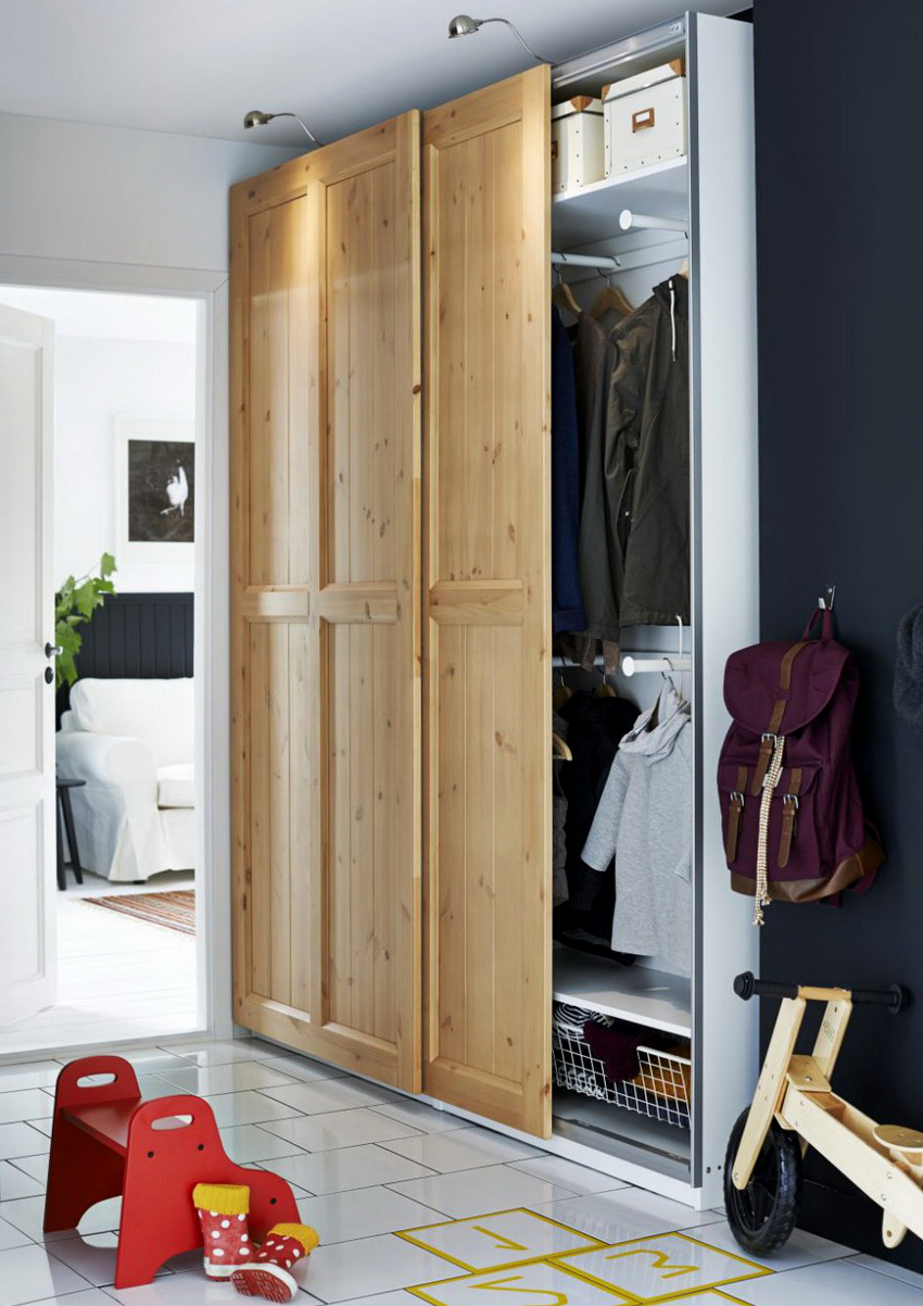 ¡Consejo útil! En el armario de la habitación, puede ocultar una tabla de planchar plegable, un tocador, equipos de radio y televisión.