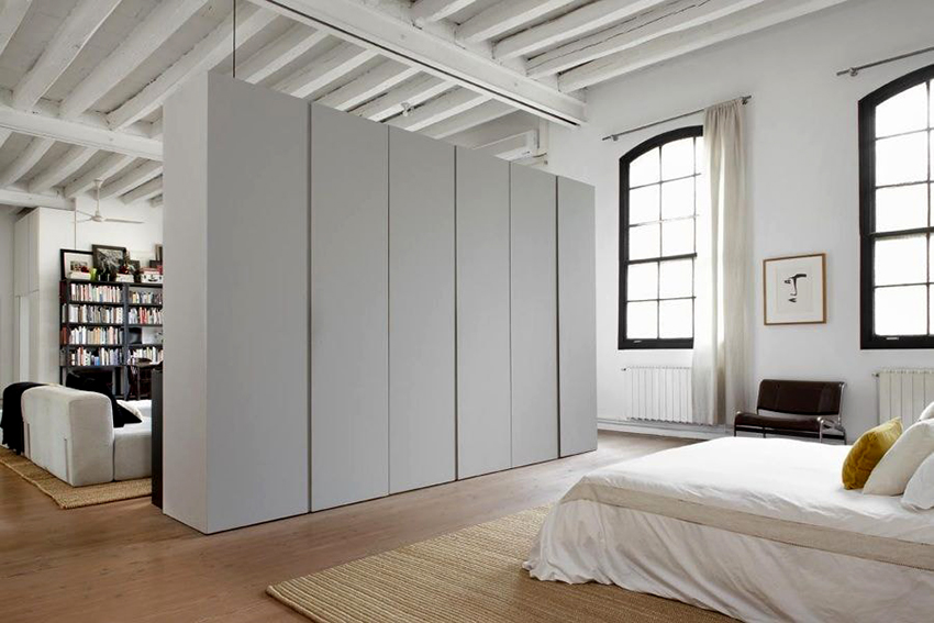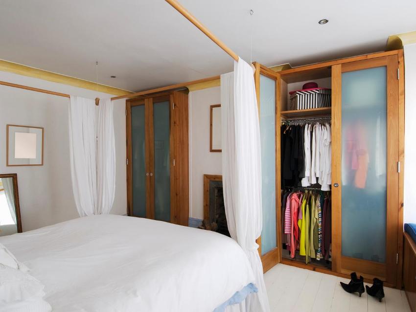 La opción de configuración más común es equipar un armario en un nicho de la habitación, que no es muy conveniente de usar para otros fines.