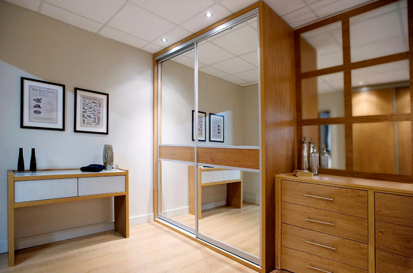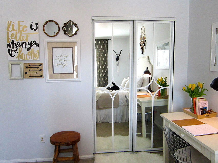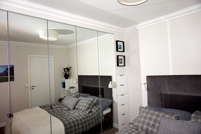 Las fachadas con espejos reemplazan perfectamente al tradicional espejo de cuerpo entero y crean la ilusión de una habitación grande