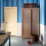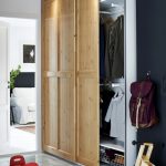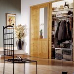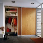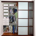 La parte superior en forma de entrepiso se utiliza para almacenar artículos grandes y poco utilizados, como mantas, ropa de cama, bolsos, maletas. La altura del compartimento debe ser de 45-60 cm. La ropa interior, las medias, los calcetines, las bufandas, los gorros y los guantes se pueden guardar convenientemente en cajones poco profundos de 12-15 cm de altura. Deben colocarse de manera que el marco de la puerta no impida su movimiento. Las manijas en ellos deben profundizarse hacia adentro para no interferir con el movimiento libre de las puertas.