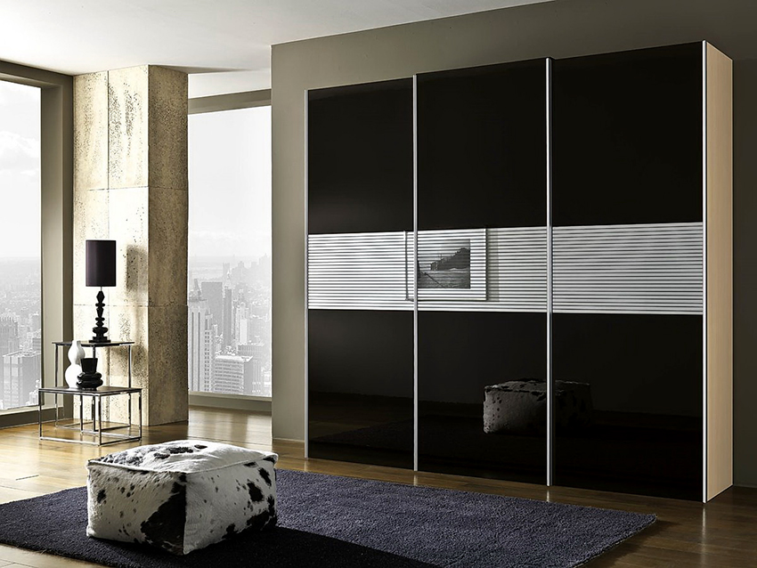 Una de las opciones de diseño para el frente del armario es el triple: vidrio resistente a los daños.