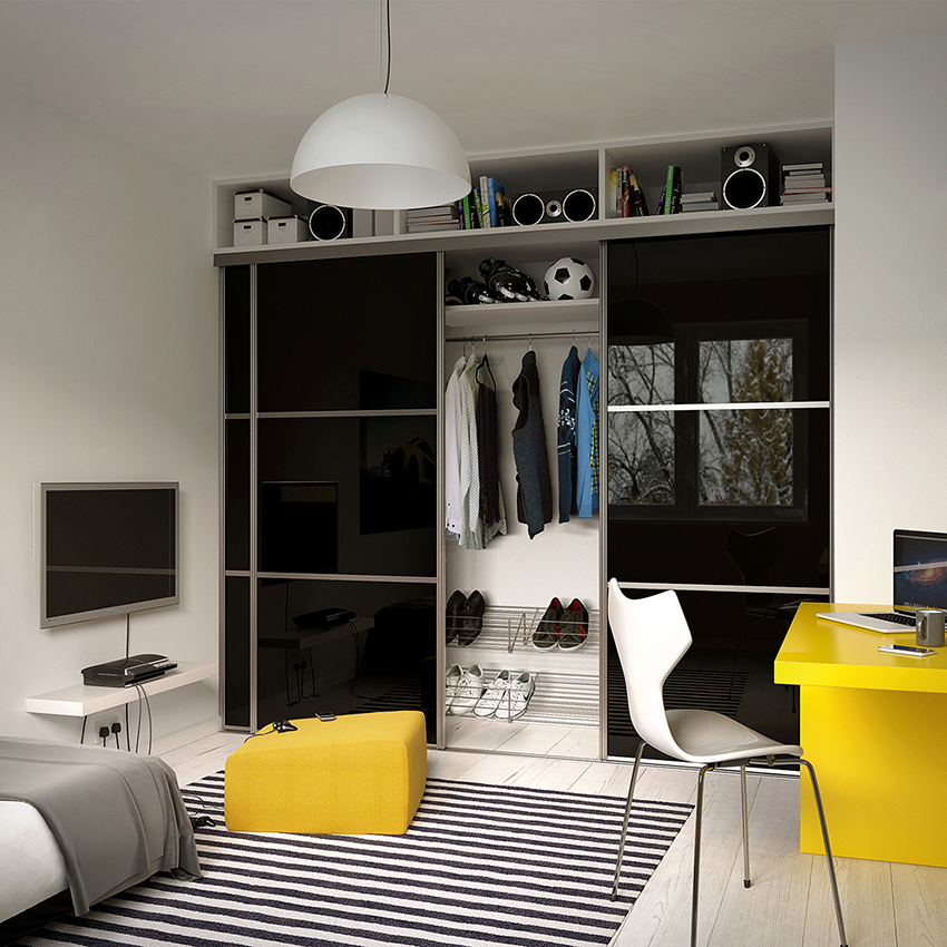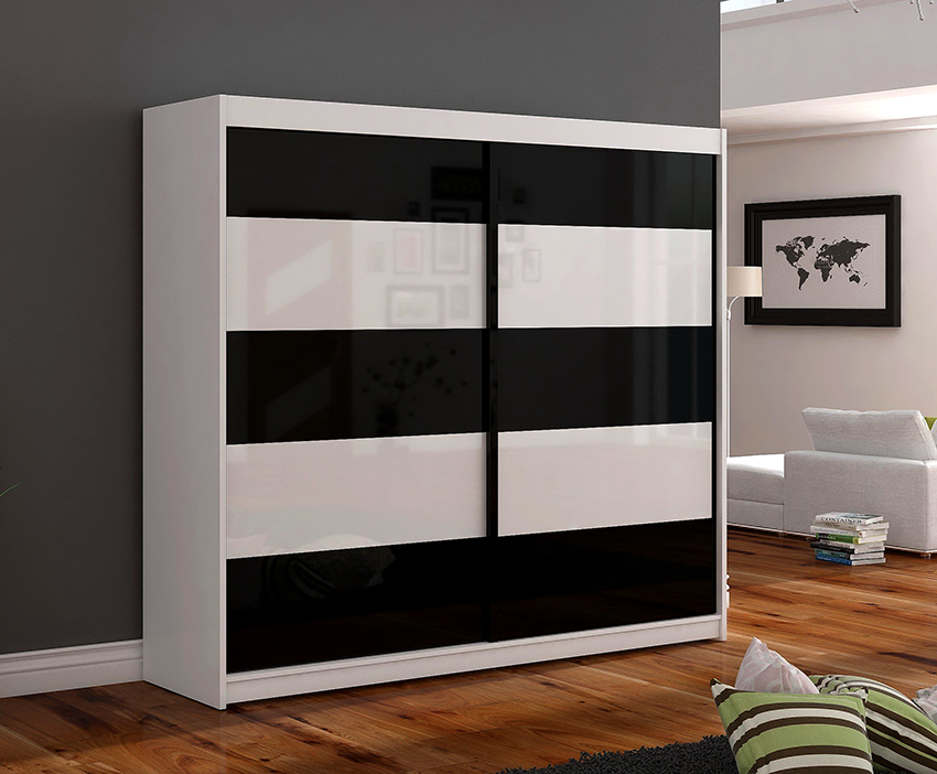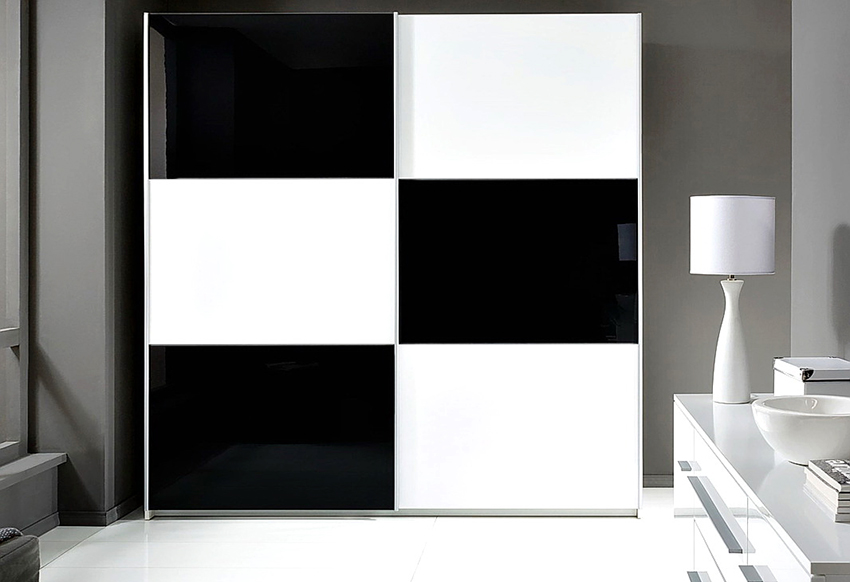Las fachadas estándar de los armarios deslizantes se hacen tradicionalmente de aglomerado sólido o espejos. Hoy en día, las soluciones combinadas se utilizan cada vez más, que se presentan en varias variaciones que se muestran en la foto de las puertas correderas de los armarios. La fachada clásica presenta una variedad de combinaciones de superficies de espejo y aglomerado. La variación geométrica consiste en rectángulos discretos, decorados con espejos, aglomerado o vidrio. En la fachada diagonal, los componentes están separados por perfiles metálicos que permiten orientar los elementos entre sí. Aquí se pueden combinar varios materiales.