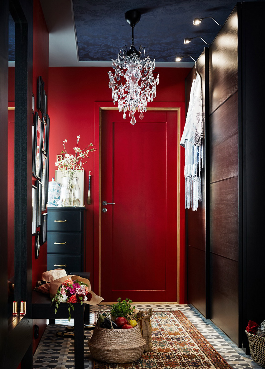 En la sala de estar, el armario, las fotos reflejan claramente esto, es recomendable equipar estantes abiertos donde pueda colocar libros, hermosos platos, recuerdos y marcos de fotos. También se recomienda organizar aquí el espacio de almacenamiento para el equipo deportivo.