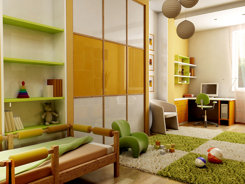 ¡Consejo útil! Para excluir el desorden de la habitación del niño con muebles innecesarios, se puede incorporar una mesa de computadora, estantes para guardar cuadernos y libros de texto en el armario.