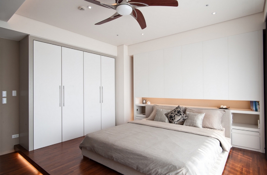 El diseño del armario empotrado es tal que ocupa por completo todo el espacio asignado, que se aprovecha de la forma más eficaz