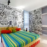 ¡Consejo útil! La fotofachada debe corresponder al diseño elegido de la habitación, así como combinar la combinación de colores con el resto de los muebles.