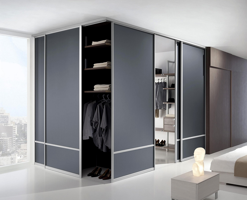 Hay varias variaciones guardarropas, que difieren en forma, tamaño y material de acabado. Por tipo de diseño, los productos pueden ser tipo caja o empotrados. La primera opción es un armario independiente, que consta de paneles traseros y laterales, paneles superior e inferior, puertas correderas. La estructura se puede mover de un lugar a otro. Es recomendable instalar un armario de este tipo en habitaciones bajas, ya que la estructura no llega al techo.