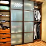 Además de los materiales tradicionales utilizados para decorar las puertas de los armarios, se utilizan tecnologías modernas y sus diversas combinaciones. Las fachadas se pueden decorar con vidrieras, adornos pulidos con chorro de arena e imágenes fotográficas. Se aplica una variedad de patrones y patrones al vidrio esmerilado o una superficie de espejo usando una máquina de chorro de arena. Puede elegir la versión adecuada de las opciones listas para usar o crear un adorno a medida. El precio de un armario empotrado con tal fachada es bastante alto.