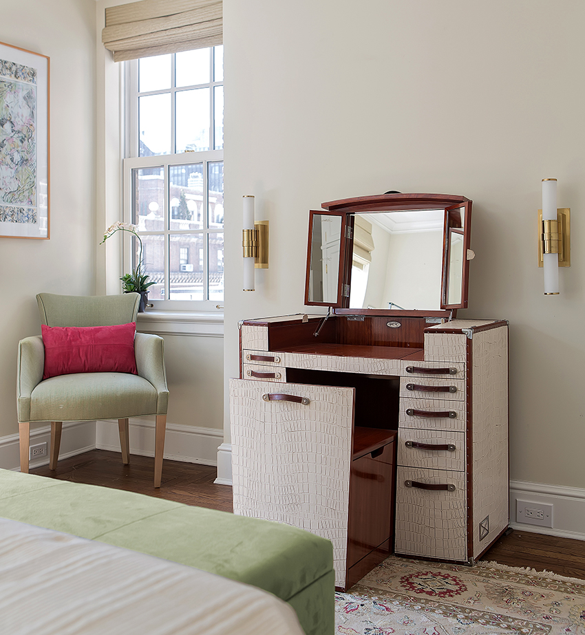 Diseño elegante de mesas de maquillaje con espejo en el interior del dormitorio.