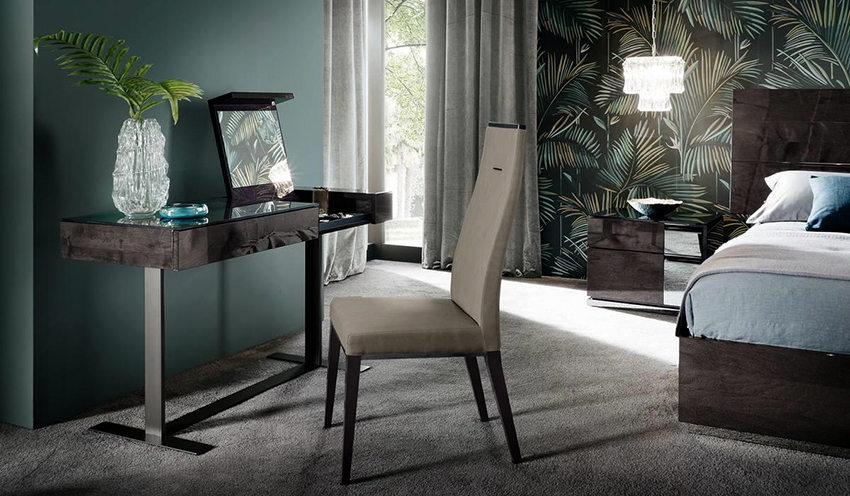 El tocador es un territorio verdaderamente femenino. Este mueble puede caber incluso en el dormitorio más pequeño. Además, el acabado atrevido de esta pieza agrega un toque elegante al dormitorio. El práctico diseño te permite poner todo lo necesario para aplicar y desmaquillar, peines, complementos, perfumes. Los estantes y numerosos cajones son perfectos para guardar cinturones, bufandas y joyas.