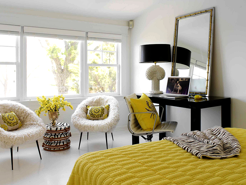 Con la ayuda de una mesa de esquina con espejo, se soluciona perfectamente el problema con la esquina que está al lado de la ventana. En este caso, la cama se coloca con la cabecera contra la pared, por lo que solo quedan 70-80 cm desde la esquina hasta el alféizar de la ventana. La mayoría de las personas están seguras de que solo se puede instalar una mesita de noche pequeña, pero este no es el caso: una mesa de esquina puede caber perfectamente allí.