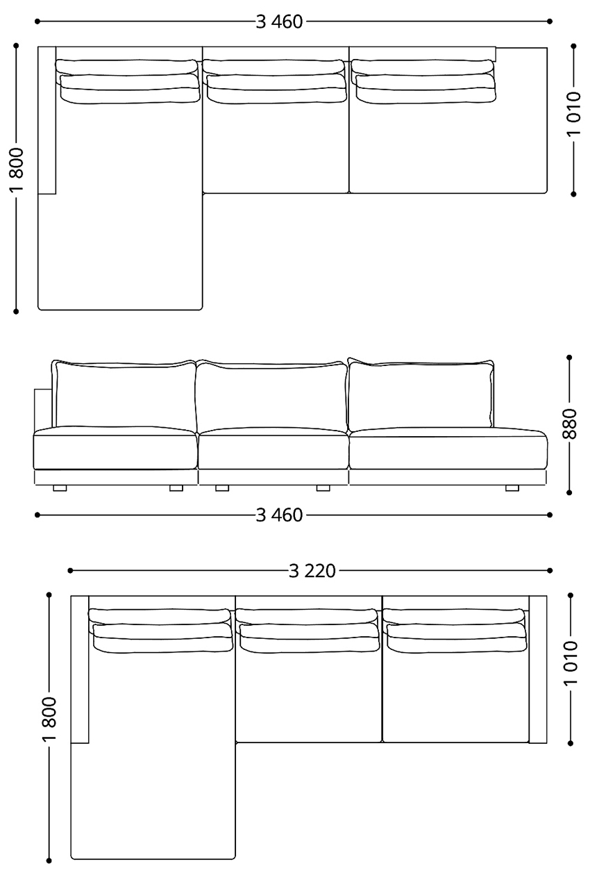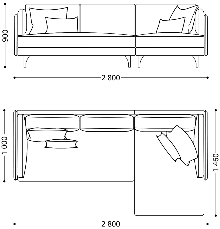 Según la norma, las dimensiones del sofá esquinero son las siguientes: