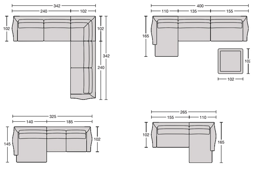 Diseños personalizados: dibujos de sofás esquineros con dimensiones