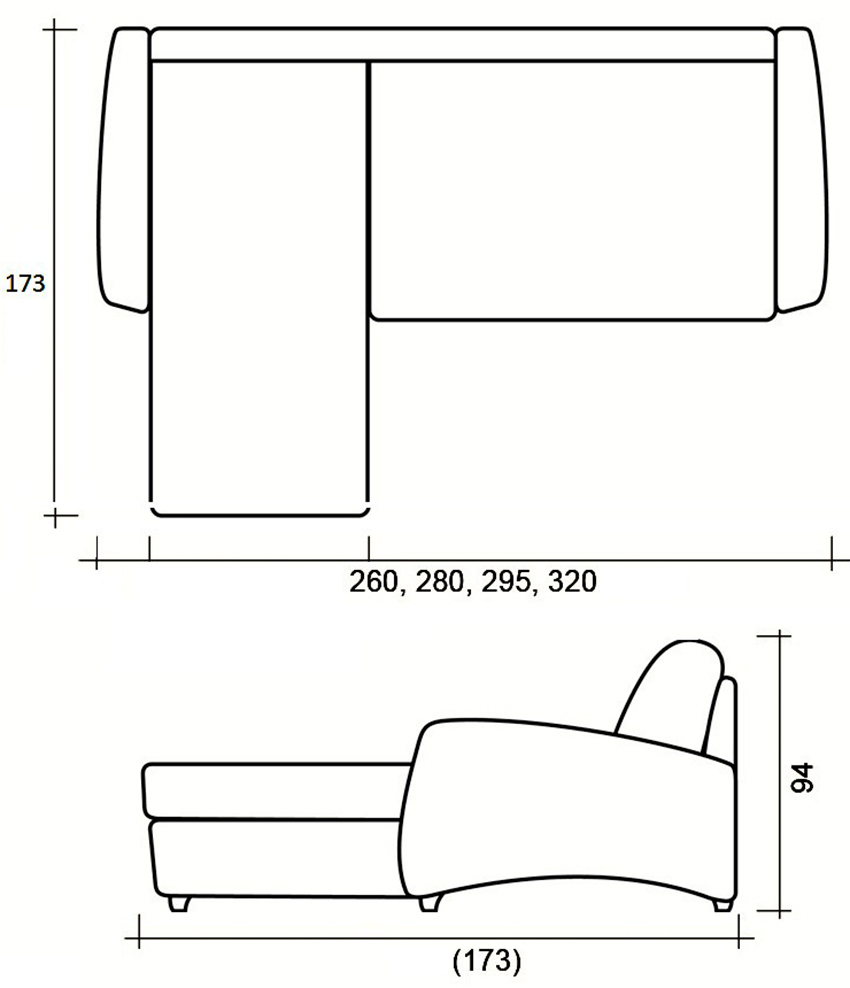 Los diseños pequeños incluyen sofás con chaise longue, así como productos trapezoidales. La ausencia de una pared lateral y un respaldo permitió a los fabricantes reducir el tamaño de dichos modelos tanto como fuera posible y minimizar el área que se requiere para su instalación.