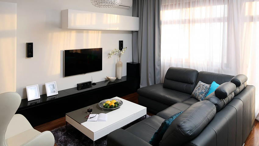 Independientemente de dónde se colocará el sofá y cuáles sean sus dimensiones, es recomendable dejar alrededor de 1 m de espacio libre cerca de él para que los hogares y los invitados puedan moverse cómodamente por la habitación.