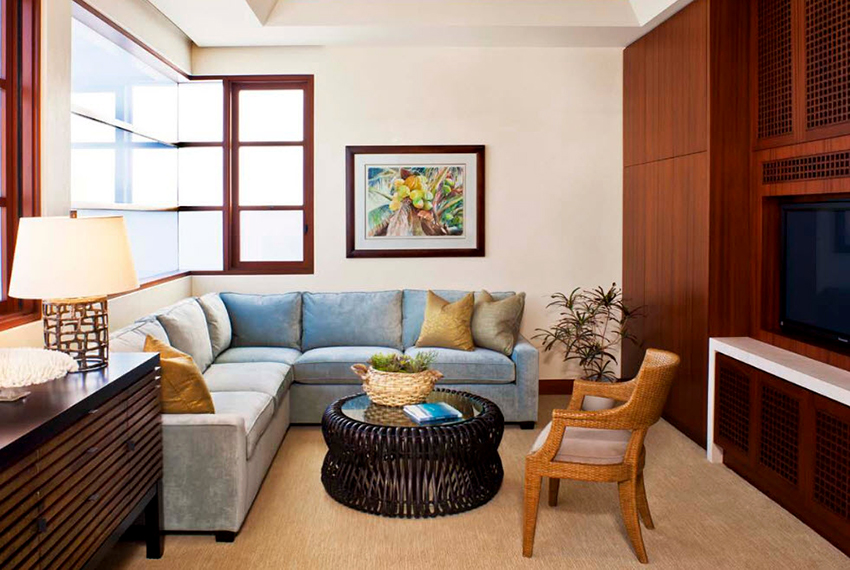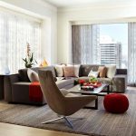 En habitaciones con un área muy grande, se pueden instalar otros muebles como complemento a la estructura de la esquina: