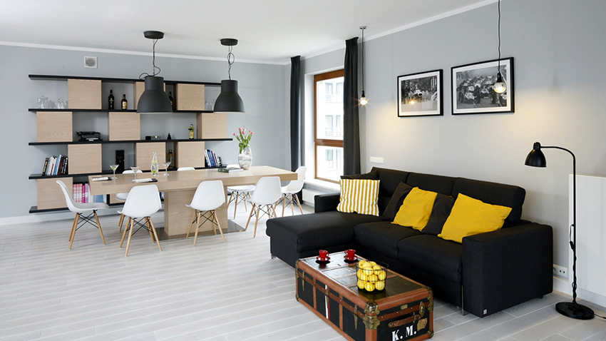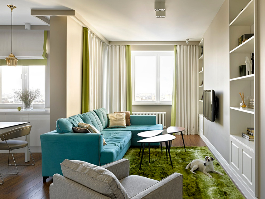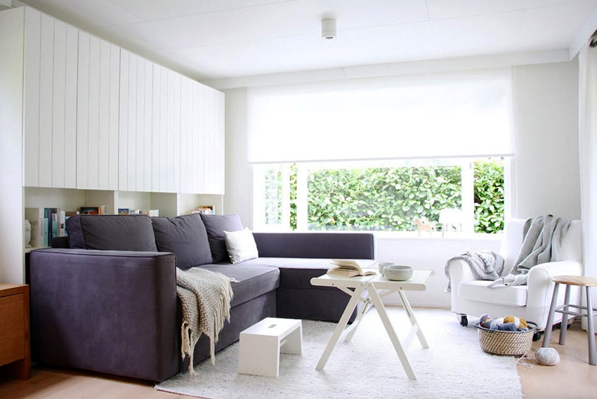 Un sofá de esquina plegable será la solución perfecta para una sala de estar combinada con un dormitorio.