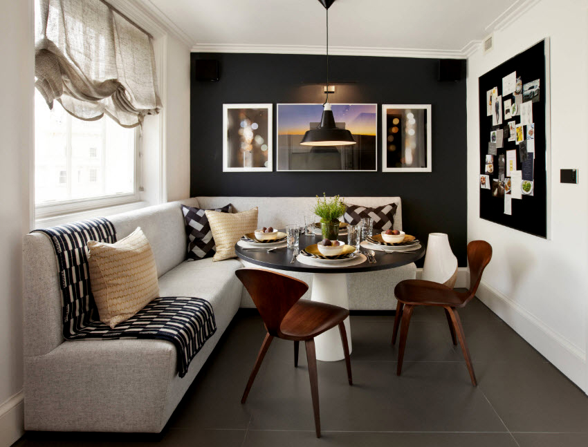 Los sofás de esquina a menudo se compran para la cocina. Proporcionan asientos adicionales, un área para dormir o se pueden usar para almacenamiento. Los tamaños de tales modelos son muy diversos. Los materiales duraderos se utilizan como tapizado, que son inherentes a las propiedades repelentes al agua.