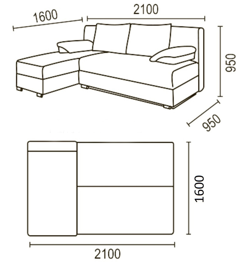 Dimensiones de los sofás de esquina | Área de dormir, m | precio, frotar. |