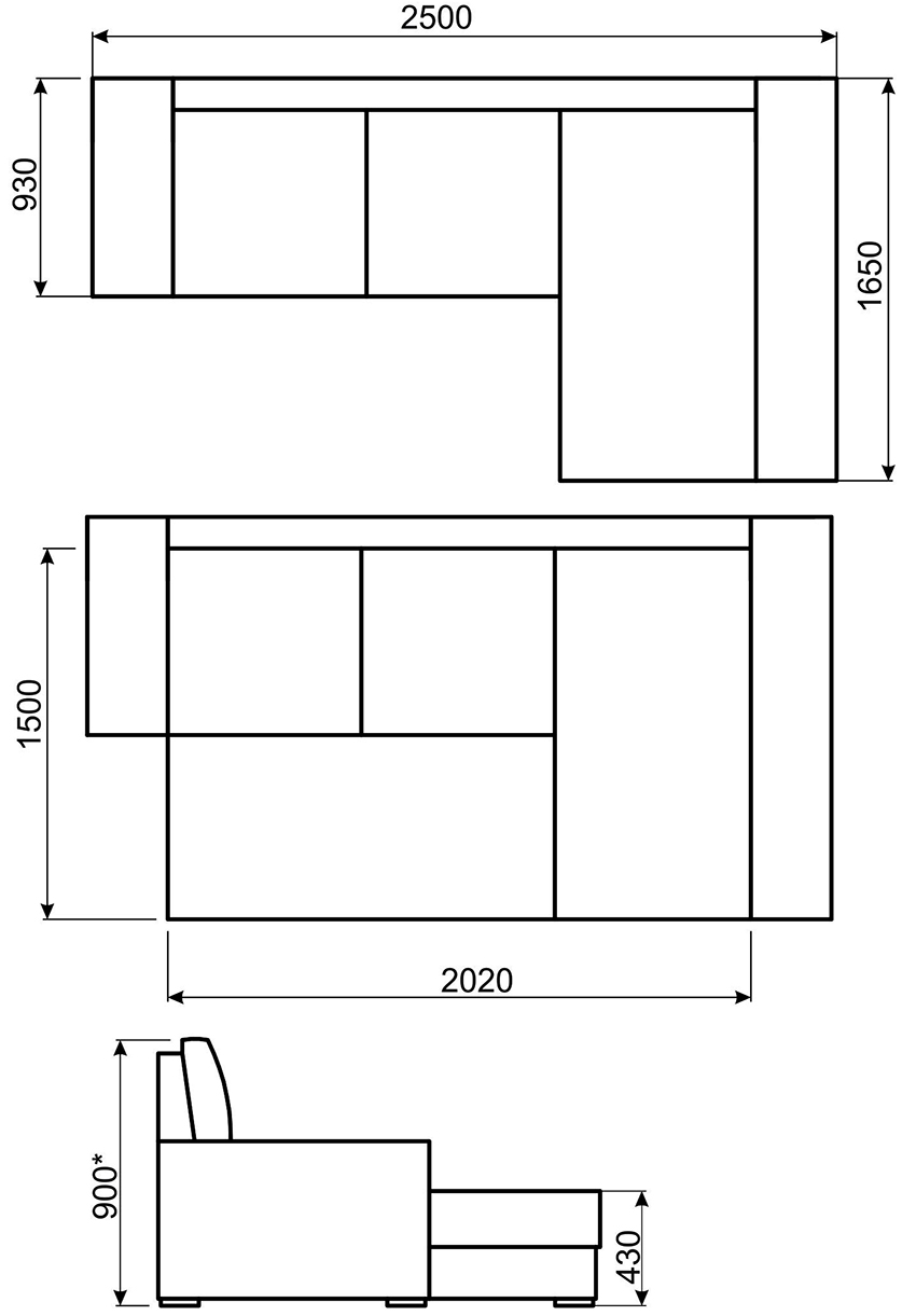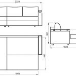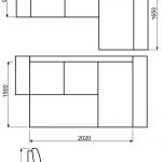 Dibujo de una esquina no estándar. sofá con dimensiones