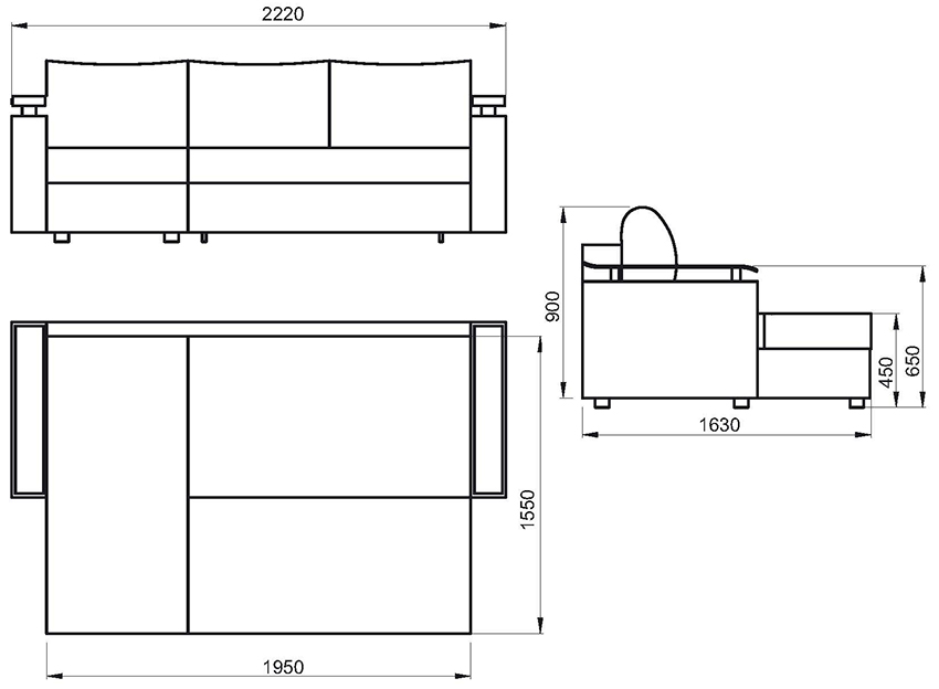 A la venta hay cómodos modelos de sofás rinconeras universales con una gran litera de 200x200 cm. Están pensados para alojar cómodamente a dos personas, sin ocupar demasiado espacio al desplegarse. Los modelos transformables pueden equiparse con una chaise longue, cuyo tamaño puede ser de hasta 1,9 m, y la longitud de este elemento está dentro de los 2-2,2 m. Estos parámetros son suficientes para que el módulo se utilice para dormir sin abrir el propio sofá.