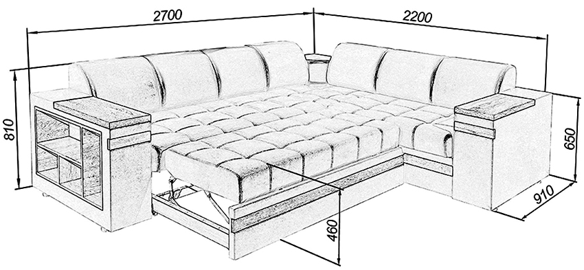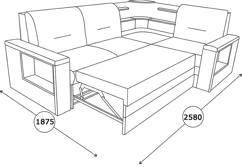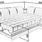 Para una litera en un sofá de esquina grande, el tamaño de 2000x1400 mm se considera el mínimo y las dimensiones máximas del área para dormir son 2000x3000 mm.