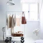 Una percha con ruedas también será apropiada en el interior de la casa. La funcionalidad adicional del perchero para almacenar ropa facilitará su traslado en caso de que se espere que un gran número de invitados se reúnan en un apartamento con un pasillo pequeño.