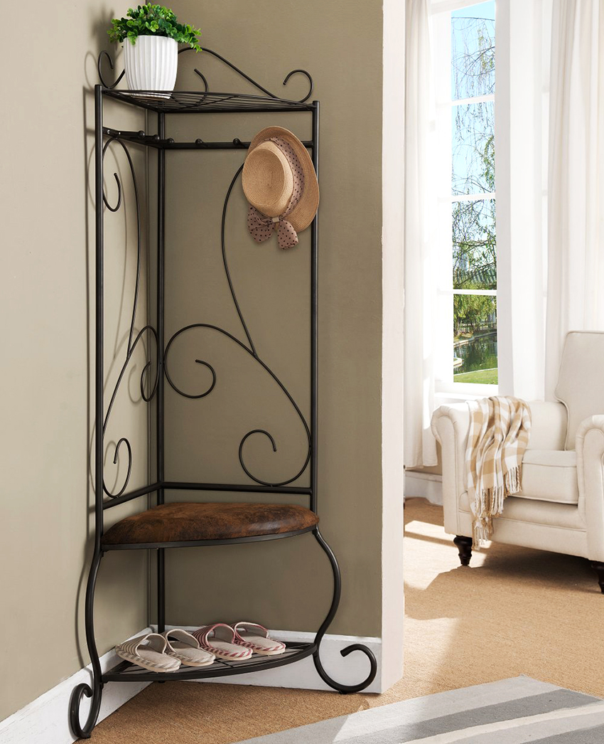 ¡Aviso util! Al elegir el tipo de percha para cosas y un modelo específico, debe tener en cuenta un factor como el tamaño del pasillo. Si hay metros cuadrados adicionales, solo puede guiarse por las preferencias de sabor. Sin embargo, si el espacio es limitado, entonces es mejor elegir productos de esquina.