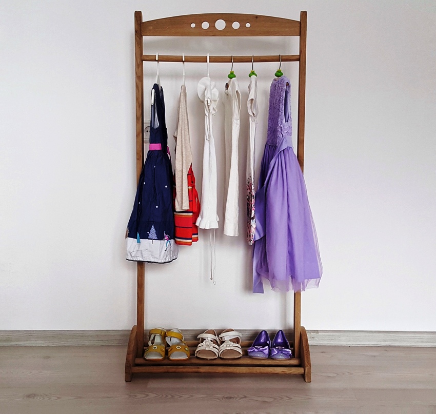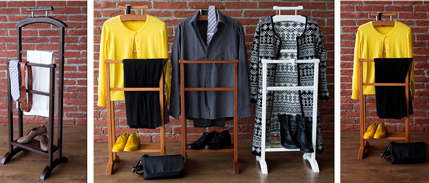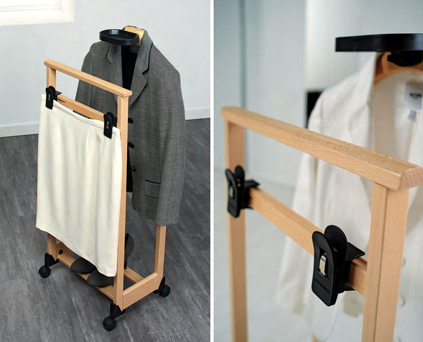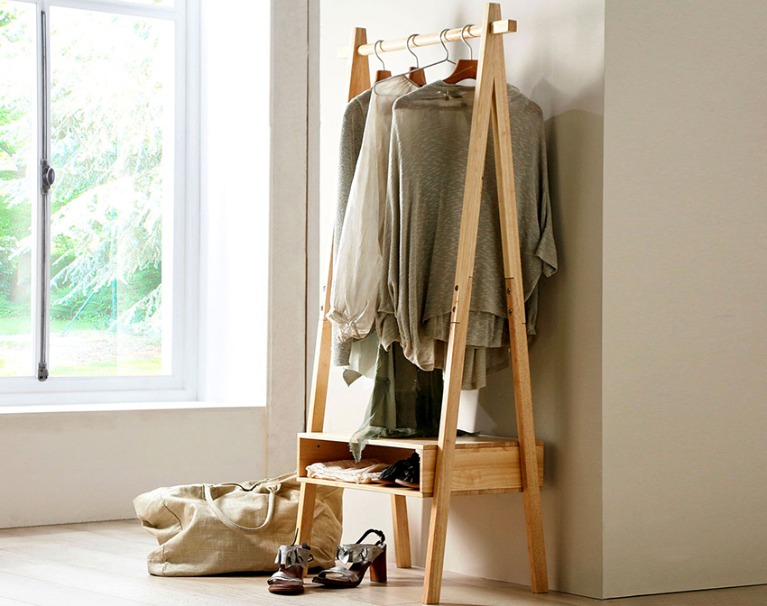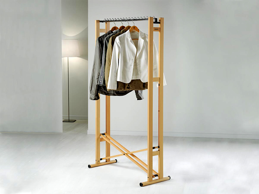 - La ligereza del material de madera hace que el colgador de ropa sea móvil, lo que le permite mover el artículo no solo de esquina a esquina, sino también transferirlo a diferentes habitaciones.