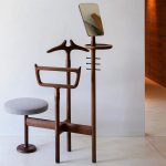 La versión más avanzada de la percha para traje de piso contiene un espejo móvil o fijo, así como los estantes necesarios para almacenar varios artículos pequeños como gemelos o pasadores de corbata. Muy a menudo, los diseñadores diseñan perchas para disfraces con ruedas. La presencia de tal detalle facilita enormemente el movimiento de la estructura no solo dentro de la habitación, sino en toda la casa.