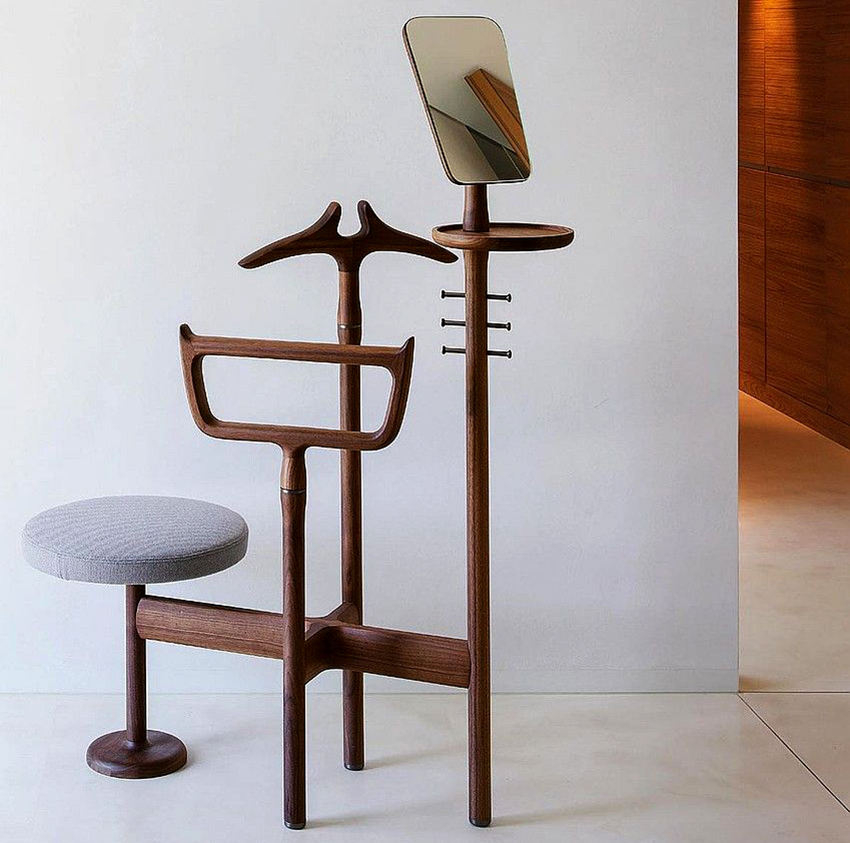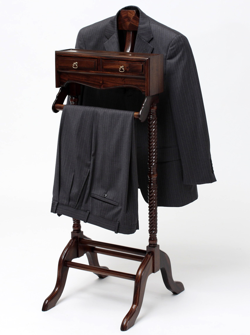 El nombre de este mueble habla por sí solo. Es un diseño compacto muy funcional para guardar chaquetas y pantalones encima. La versión clásica asume la colocación de un juego, también hay productos más avanzados que prevén la capacidad de dos o tres trajes. Estos modelos son mucho más caros.