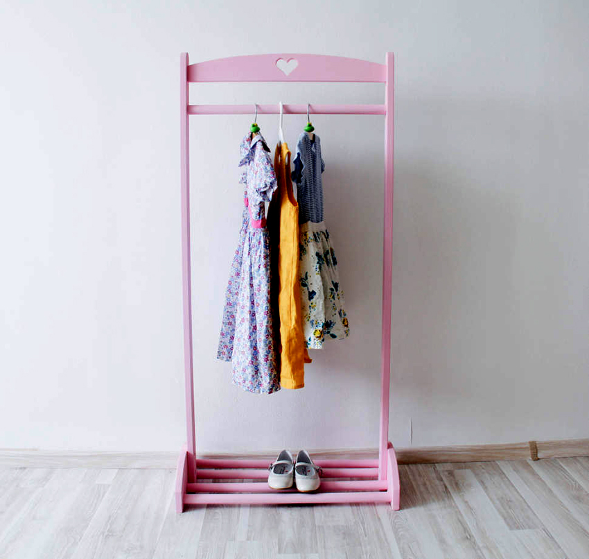 Un tipo de producto de clase de disfraces es un colgador de piso para niños. De hecho, se trata de una versión reducida del modelo para adultos, que ayuda a formar en los niños una actitud cuidadosa ante las cosas y desarrolla un sentido de responsabilidad desde la primera infancia. Además, este diseño es muy conveniente para vestirse con frecuencia, lo cual es típico de los niños.Después de todo, para colocar un traje escolar en una percha de este tipo, solo tomará un par de minutos.