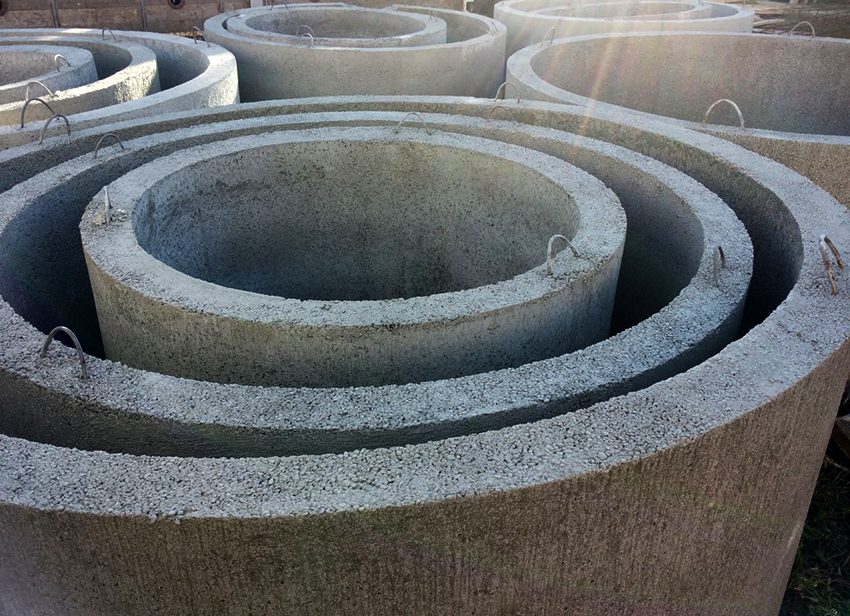 Concreto reforzado. Este tipo es el más común y se utiliza para pozos de alcantarillado y drenaje. Puede comprar dichos elementos estructurales en la fábrica que los produce.