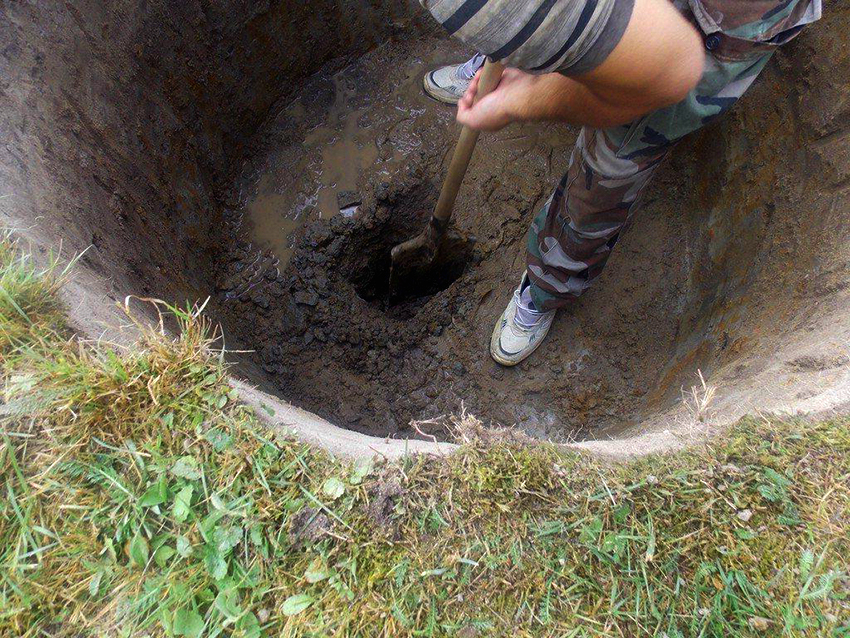 El suelo, que contiene una gran cantidad de piedras, debe aflojarse con chatarra. La eliminación de la tierra del pozo se lleva a cabo utilizando una estructura simple: un trípode con un cubo ubicado en una cuerda. Una vez que el pozo de la profundidad requerida está listo, se debe seguir una cierta secuencia de acciones.