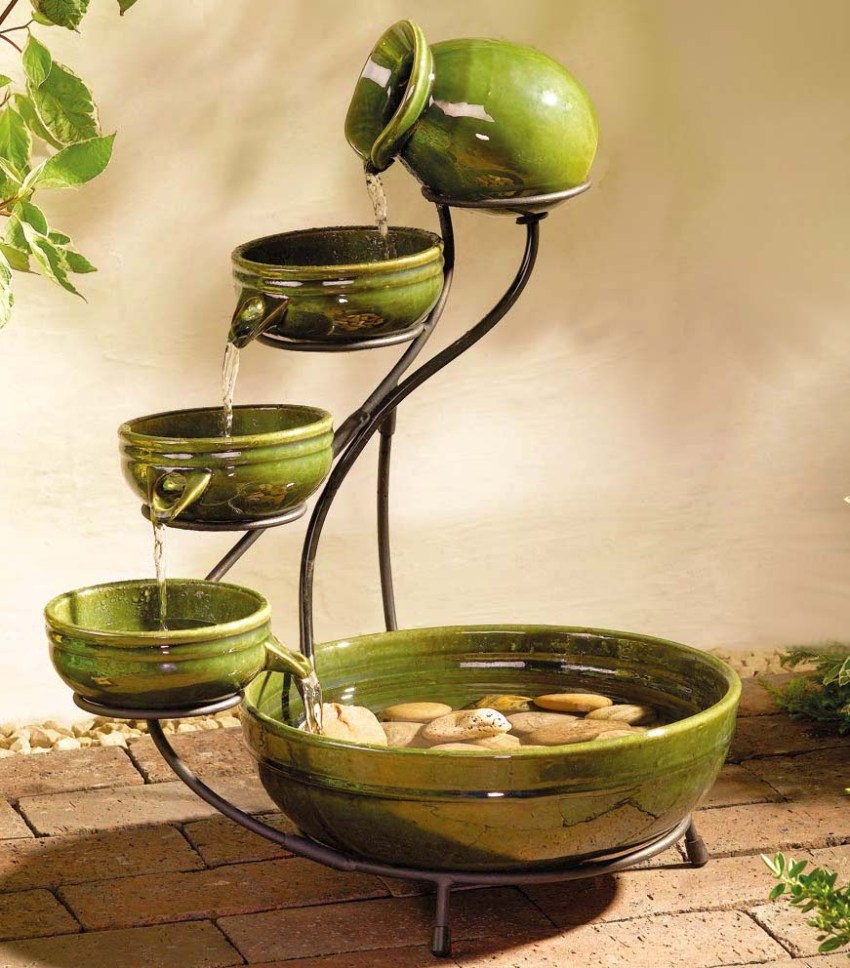 ¡Importante! Para crear una mini cascada con sus propias manos, debe usar un recipiente más grande y garantizar el funcionamiento constante de la bomba con un suministro continuo de agua.