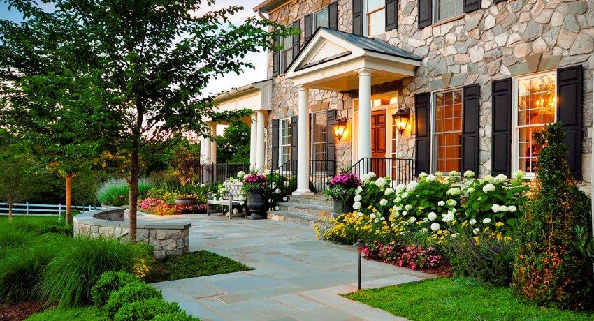 Jardín delantero frente a la casa: planificación, ideas de diseño, elección de materiales para la cerca, recomendaciones para instalar una cerca, selección de plantas y elementos de decoración.