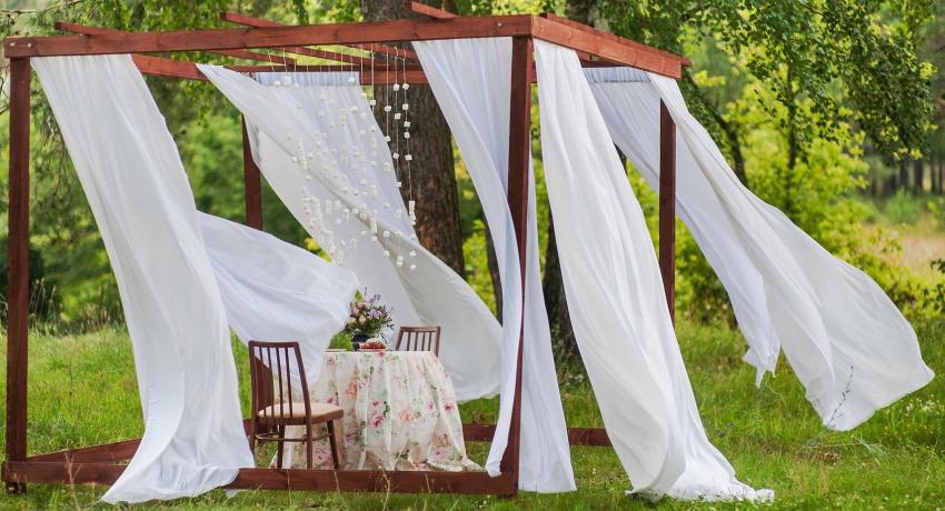 Cortinas de exterior para cenadores y terrazas: decoración del sitio y protección de las inclemencias del tiempo y los insectos. La variedad de textiles utilizados, características, características, pros y contras.
