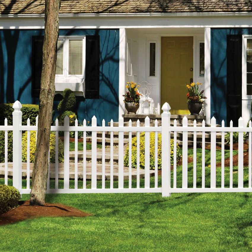 Vallas de piquetevallas para el jardín delantero. Foto opciones de diferentes materiales