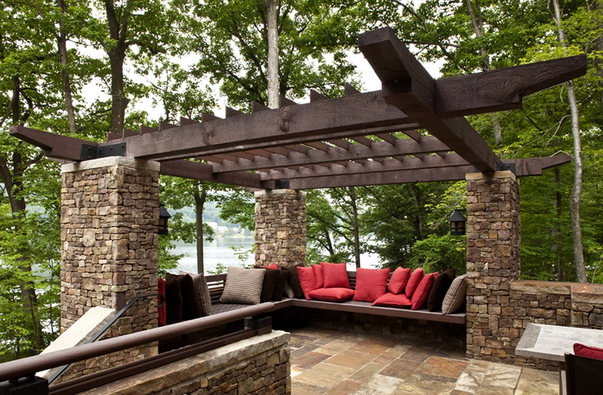 Las fotos de ideas ofrecen toneladas de modelos de diseño creativos. Dando preferencia a cualquier opción, debes tomar una decisión equilibrada. Seguro que te parecerá interesante la idea de una pérgola con columnas-soportes de piedra. Pero si es necesario reducir el tamaño, según las condiciones del sitio, la percepción visual de la estructura cambiará significativamente.