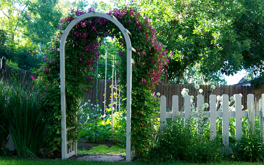 Muchos modelos interesantes contienen fotos de arcos para flores. Cabe recordar que incluso la pérgola más delicada para clemátide perderá su valor artístico si está sola en el sitio.