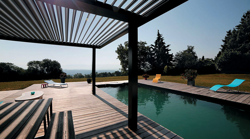 Los productos Decolife también tienen demanda. Características de diseño: multifuncionalidad y control remoto moderno. Destaca especialmente el sistema bioclimático. Es un diseño de techo retráctil. Tiene lamas de aluminio que se pueden controlar. Giran en la dirección correcta para crear un microclima confortable, que protege del sol y la precipitación.